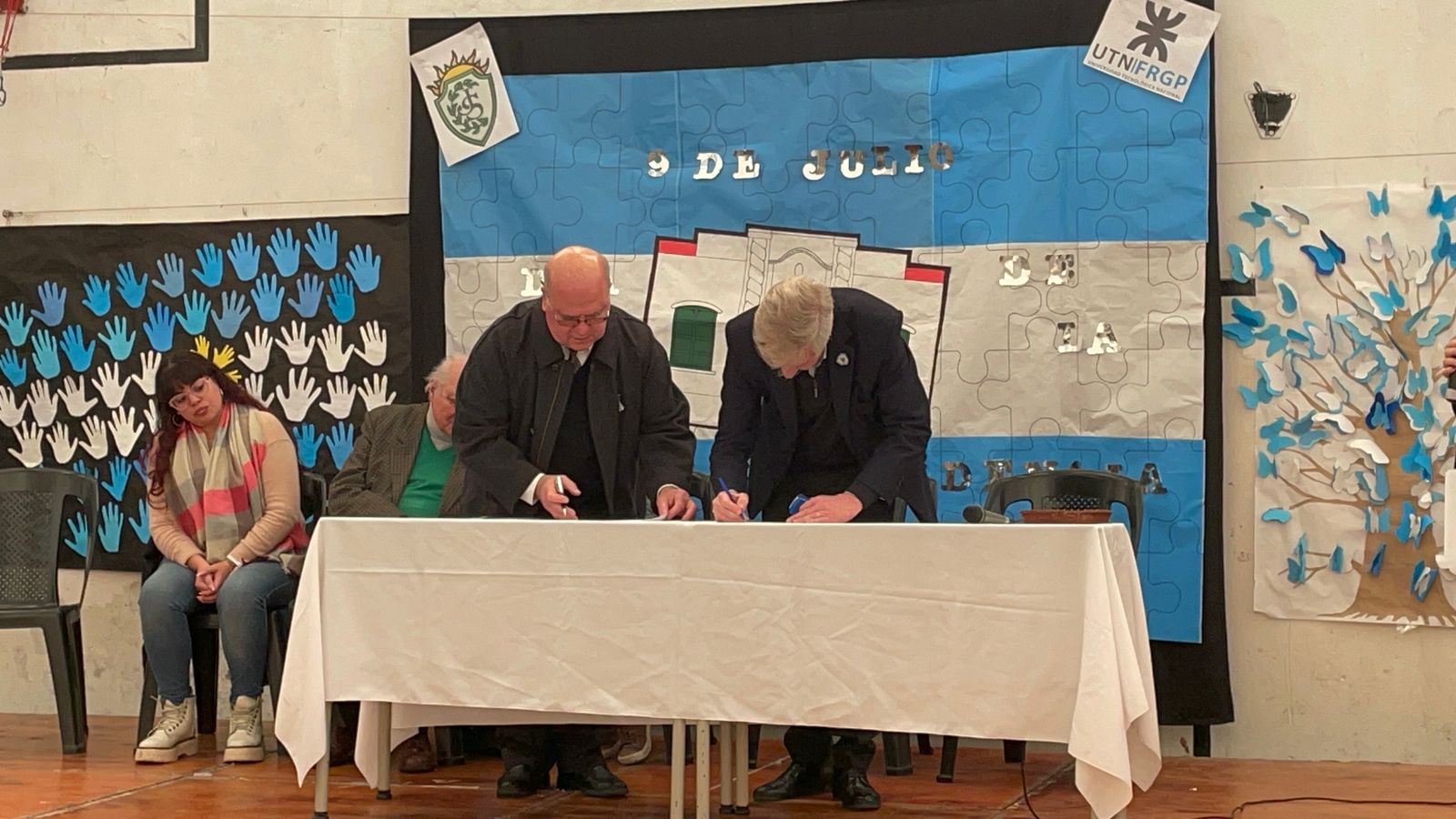 La firma del convenio se realizó en la tarde del lunes de julio con la presencia de autoridades de la DIEGEP, el equipo de trabajo de la UTN-FRGP y la comunidad educativa del Instituto San José de Calasanz.