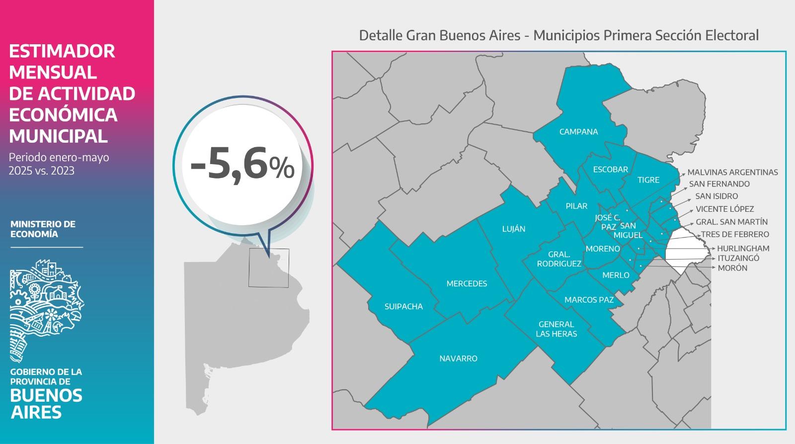 En su informe sobre “La Primera”, López describió: “Cierres de empresas y despidos, retiros voluntarios y suspensiones de trabajadores, es una realidad cotidiana en estos distritos desde que asumió este Gobierno nacional con su modelo económico que atenta contra la producción y trabajo bonaerense”, recordó además que los 24 distritos que componen la Primera Sección Electoral “contienen 1,4 millones de puestos de trabajo registrados, y las principales actividades del sector privado son la Industria (que aporta el 31% del valor agregado); el Comercio (20%); la Construcción (8%) y Transporte y comunicaciones (5%)” y agregó: “Todo esto está siendo severamente afectado por las políticas nacionales: la primera sección de la Provincia ya tuvo una caída de casi 6 puntos de actividad económica desde que asumió este Gobierno”.