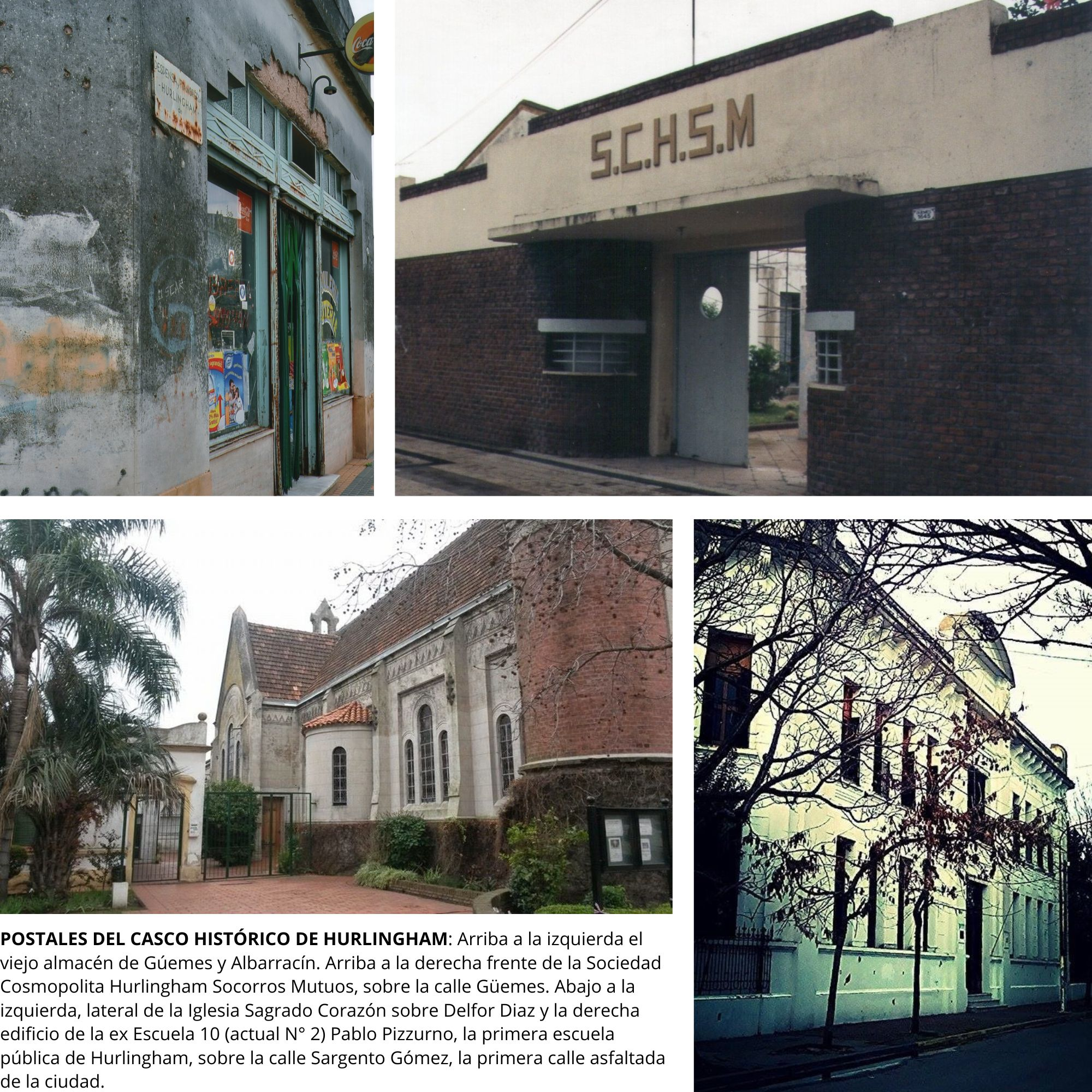 Esta situación conservadora fue por mucho tiempo en su «área fundacional» inscripta entre el Hurlingham Club y el espacio que a modo de medialuna queda encerrado entre el Club y las vías del Ferrocarril Urquiza y es allí donde se construyeron los edificios que caracterizan a una ciudad, la Iglesia, la Escuela Pública (ex N° 10), el Correo, la Delegación Municipal, la Central Telefónica, Club Cine y Teatro Cosmopolita, etc.